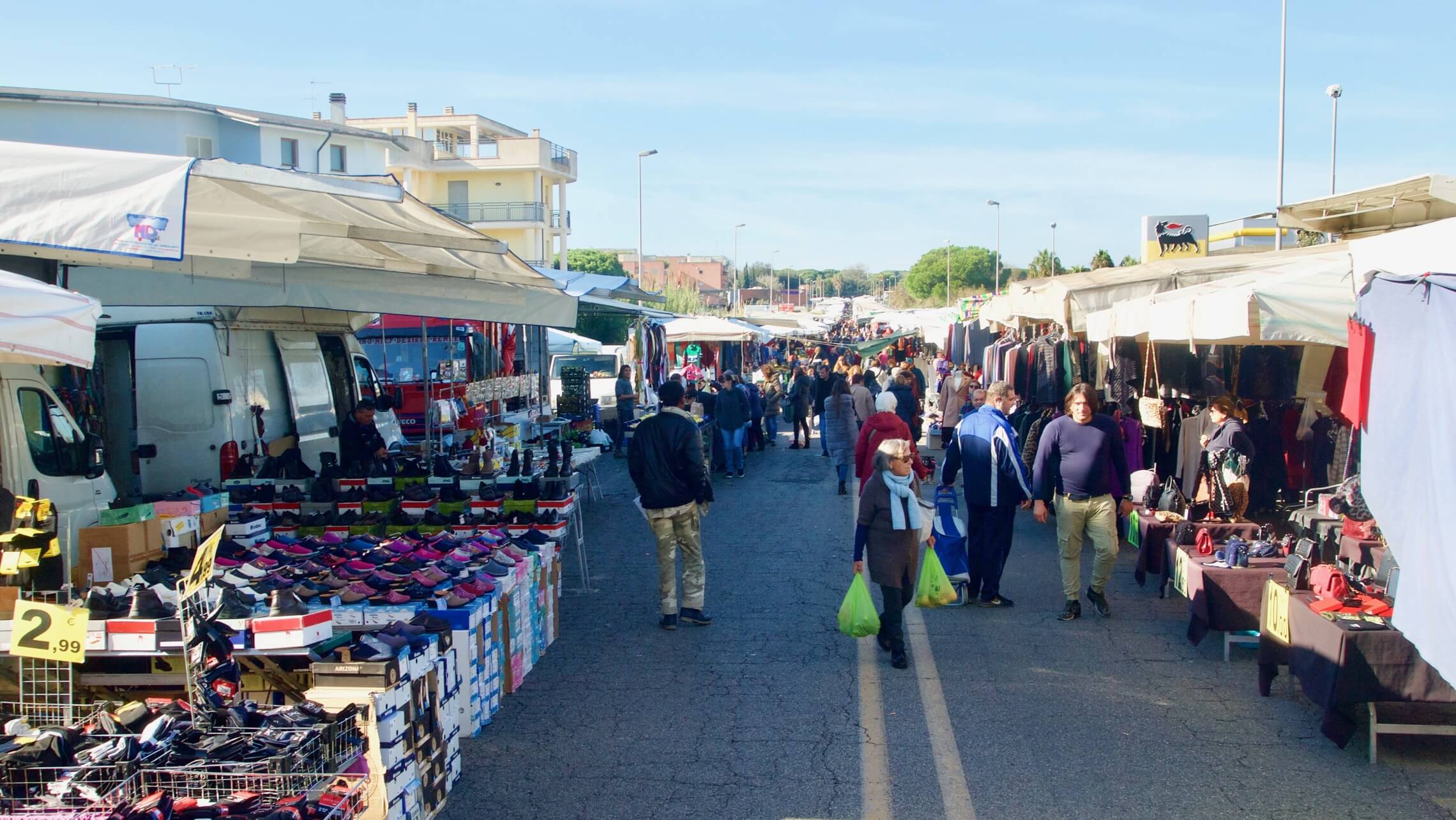 Hver torsdag formiddag er der marked i Nettuno. Det sker på Via Ugo la Malfa. Det er den vej der starter ved den amerikanske militær kirkegård og hvor McDonald’s ligger. Hele vejen, omkring 700 meter, er spæret af og i begge sider ligger bod efter bod side om side med alt hvad hjertet begærer. Fødevareboderne ligger samlet midt for på den ene side, mens tøj og andet sælges på den anden side, og hvor der nu er plads før og efter fødevarerne.